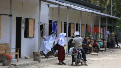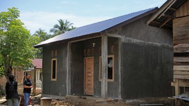 Pekerja menyelesaikan pembangunan rumah di kawasan pesisir Desa ALue Naga, Banda Aceh, Aceh, Selasa (28/4/2026). Kementerian Koordinator Bidang Perekonomian menyatakan…