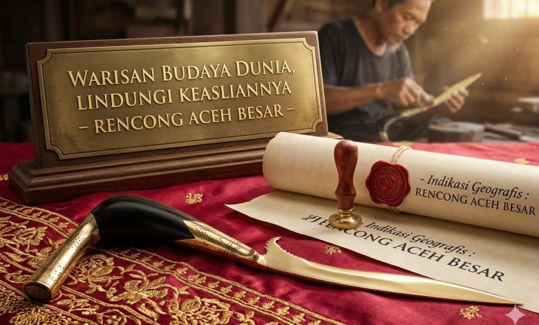 Jantho (Aentenews) – Bupati Aceh Besar Muharram Idris, sapaan akram Syeh Muharram, menegaskan kembali bahwa daerahnya secara resmi dinyatakan berhak atas Kekayaan Intelektual Komunal berupa Rencong, setelah menerima sertifikat Kekayaan Intelektual Komunal Ekspresi Budaya Tradisional dari Kementerian Hukum RI. Mengapresiasi atas kinerja Dinas Pendidikan dan Kebudayaan yang telah mengusulkan berbagai hasil karya yang diwariskan secara turun temurun, untuk ditetapkan sebagai Warisan Budaya dan masuk dalam data Nasional, seperti Rencong, katanya di Aceh Besar. “Ini sangat penting, agar setiap warisan budaya kita tercatat, punya sertifikat hak cipta serta tidak bisa diklaim oleh orang maupun daerah lain,” tegasnya di Kota Jantho pada 24 April 2026.Rencong sebagai warisan budaya, yang dulu merupakan senjata tajam dipergunakan para pejuang untuk melawan penjajah. Untuk menjaga nilai dan sejarahnya, hingga saat ini Rencong masih tetap di produksi di Gampong Rencong di Baet (Baet Mesjid, Baet Lampuot dan Baet Meusugo) di Kemukiman Sibreh, Kecamatan Sukamakmur, dengan fungsi dan kegunaan kini berbeda.Pemerintah Kabupaten Aceh Besar melalui Dinas Pendidikan dan Kebudayaan (Disdikbud) berhasil mencatatkan Rencong sebagai Kekayaan Intelektual Komunal (KIK) dalam kategori Ekspresi Budaya Tradisional (EBT).Pencatatan tersebut ditetapkan oleh Kementerian Hukum dan Hak Asasi Manusia Republik Indonesia melalui Surat Pencatatan Inventarisasi Kekayaan Intelektual Komunal, sesuai dengan Undang-Undang Nomor 28 Tahun 2014 tentang Hak Cipta.Sekdisdikbud Aceh Besar, Fahrurrazi, mengatakan pencatatan ini merupakan langkah strategis dalam melindungi warisan budaya daerah agar tetap lestari dan memiliki kekuatan hukum.“Rencong bukan sekadar senjata tradisional, tetapi juga simbol jati diri dan nilai budaya masyarakat Aceh yang harus dijaga bersama. Dengan adanya pencatatan ini, kita memiliki dasar hukum yang kuat untuk melindungi dan melestarikannya,” ujar Fahrurrazi.Dalam dokumen resmi tersebut, Rencong diklasifikasikan sebagai ekspresi budaya yang mencakup seni rupa dua dimensi dan tiga dimensi, serta bagian dari upacara adat, baik ritual maupun pesta rakyat. Rencong juga memiliki nilai sakral dan menjadi simbol yang dipegang teguh oleh masyarakat.Kabupaten Aceh Besar ditetapkan sebagai wilayah asal, dengan Dinas Pendidikan dan Kebudayaan Aceh Besar sebagai kustodian. Nomor pencatatan yang diterbitkan adalah EBT11202200122, dan telah didokumentasikan dalam Pusat Data Nasional Kekayaan Intelektual Komunal Indonesia.Fahrurrazi menambahkan, ke depan pihaknya akan terus mendorong inventarisasi berbagai ekspresi budaya tradisional lainnya di Aceh Besar agar mendapatkan perlindungan serupa.