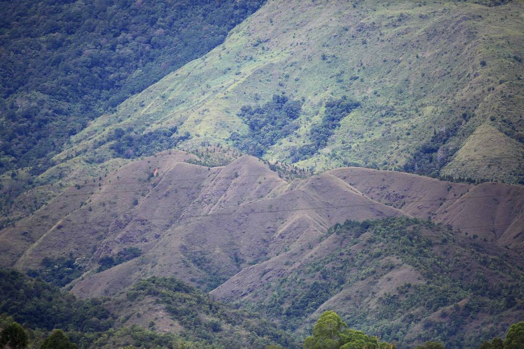 Kondisi kawassan hutan yang tampak gundul di kawasan pegunungan Kabupaten Aceh Besar, Aceh, Selasa (7/4/2026). Menurut data Walhi periode 2016 – 2025 seluas 1,4 juta hektare hutan di Aceh, Sumatera Utara dan Sumatera Barat mengalami deforestasi akibat aktivitas sejumlah perusahaan pemegang izin tambang, HGU sawit, Perizinan Berusaha Pemanfaatan Hutan (PBPH), Geotermal, izin PLTA dan PLTM. Aentenews Foto/Ampelsa.