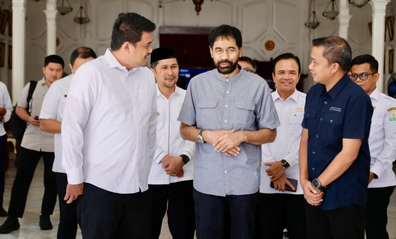 BANDA ACEH– Gubernur Aceh, Muzakir Manaf atau Mualem menerima kunjungan silaturahmi Gubernur Sumatera Utara Bobby Nasution dan Bupati Tapanuli Tengah Masinton Pasaribu, di Pendopo Gubernur Aceh, Rabu (4/6/2025).