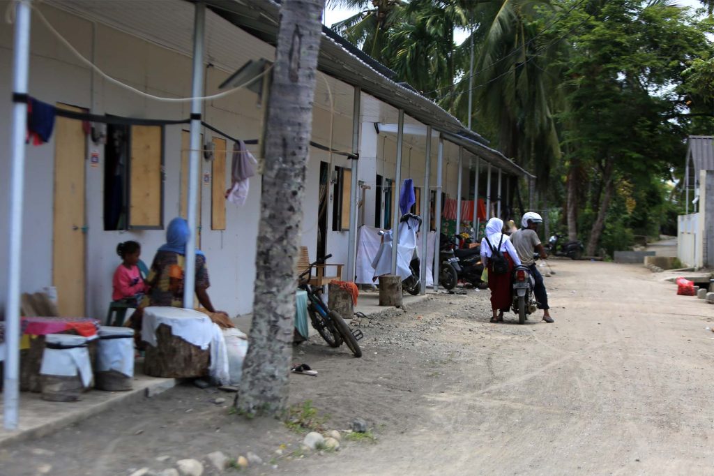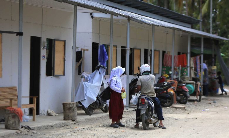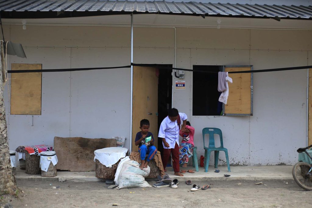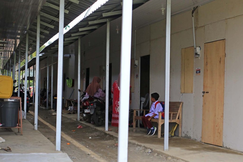 Seorang penyintas bencana banjir yang menempati Hunian Sementara (Huntara) bersiap mengantarkan anaknya berangkat ke sekolah di Desa Meunasah Raya, Pidie Jaya, Aceh, Rabu (29/4/2026). Sejumlah murid sekolah bersama orangtuanya yang terdampak bencana banjir di daetah itu sudah menempati huntara dan aktivitas belajar mengajar sudah berjalan normal , jauh lebih baik dibanding saat tinggal di tenda darurat. Aentenews Foto/Ampelsa.
