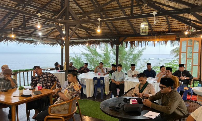 Ketua Panwaslih Aceh Selatan, Deri Friadi, bersama jajaran dan tokoh masyarakat saat menggelar diskusi publik “Ngabuburit Pengawasan” di Cafe Saung Bambu II, Batu Itam, Tapaktuan, Senin (2/3/2026). Foto Ist