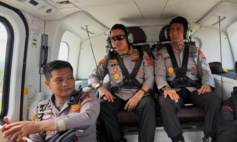 Kualasimpang (Aentenews) – Kapolda Aceh Irjen Pol Marzuki Ali Basyah patroli udara dengan helikopter untuk memastikan kondisi jalur darat di perbatasan Aceh Tamiang-Langkat (Sumatera Utara) aman dan dapat dilalui untuk pendistribusian bantuan bagi korban bencana banjir dan tanah longsor.