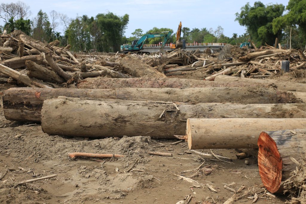 Warga menggunakan eskavator mengangkat kayu gelondongan yang menumpuk di daerah aliran sungai pascapanjir bandang dan longsor di desa Blang Cut, kecamatan Meurah Dua, kabupaten Pidie Jaya, Rabu (31/12/2025). Pemerintah mengerahkan sejumlah eskavator untuk membersihkan kayu gelondongan dan lumpur yang menutupi aliran sungai dalam rangka normalisasi sungai dan pencegahan banjir susulan. FOTO/Ampelsa.Warga menggunakan eskavator mengangkat kayu gelondongan yang menumpuk di daerah aliran sungai pascapanjir bandang dan longsor di desa Blang Cut, kecamatan Meurah Dua, kabupaten Pidie Jaya, Rabu (31/12/2025). Pemerintah mengerahkan sejumlah eskavator untuk membersihkan kayu gelondongan dan lumpur yang menutupi aliran sungai dalam rangka normalisasi sungai dan pencegahan banjir susulan. FOTO/Ampelsa.Warga menggunakan eskavator mengangkat kayu gelondongan yang menumpuk di daerah aliran sungai pascapanjir bandang dan longsor di desa Blang Cut, kecamatan Meurah Dua, kabupaten Pidie Jaya, Rabu (31/12/2025). Pemerintah mengerahkan sejumlah eskavator untuk membersihkan kayu gelondongan dan lumpur yang menutupi aliran sungai dalam rangka normalisasi sungai dan pencegahan banjir susulan. FOTO/Ampelsa.