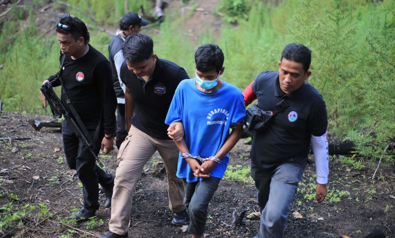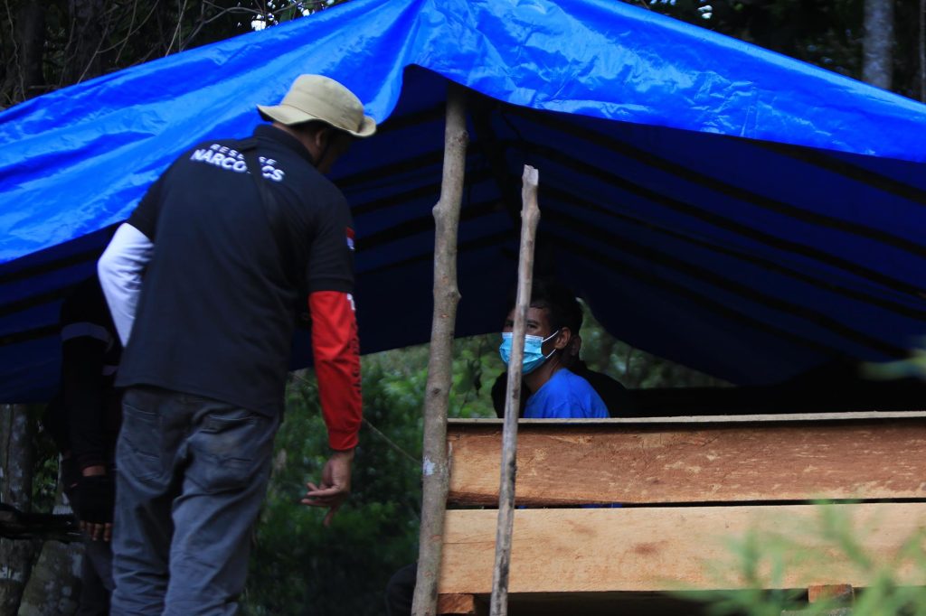 Aceh Besar (Aentenews) – Personil Polri mengamankan tersangka pemilik tanaman ganja atau Mariyuana saat operasi narkotika di Pegunungan Seulawah, kabupaten Aceh Besar, Aceh, Sabtu (10/1). Polresta Kabupaten Aceh Besar dibantu personil TNI menemukan sebanyak 2.000 batang tanaman Mariyuana pada areal sekitar satu hektare di pegunungan Seulawah dan mengamankan seorang tersangka pemilik tanaman ganja. Foto Aentenews by Ampelsa.