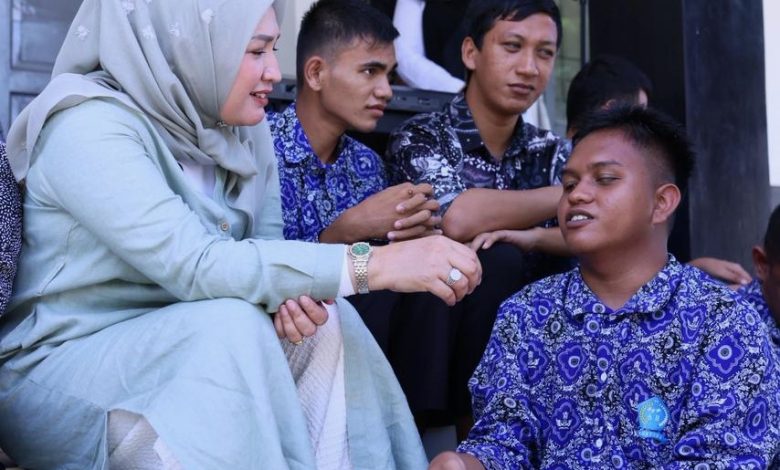 Ketua TP PKK Aceh yang juga menjabat sebagai Ibunda Guru Aceh, berkunjung ke UPTD Panti Sosial Disabilitas Rumoh Seujahtra Beujroh Meukarya, di kawasan Ladong, Rabu (5/11).