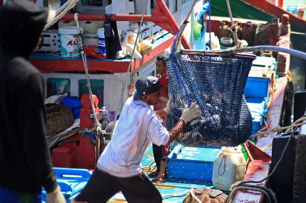 Seorang buruh pelabuhan mengangkat keranjang berisi ikan di Pelabuhan Perikanan Samudera, Lampulo, Banda Aceh, Sabtu (18/4/2026). Kementerian Kelautan dan Perikanan mencatat penerimaan negara bukan pajak (PNBP) dari berbagai penindakan pelanggaran di sektor kalutan dan perikanan mencapai Rp50 miliar tahun 2025., sementara hingga triwulan pertama tahun 2026 sekitar Rp13 miliar. Aentenews Foto/Ampelsa.Seorang buruh pelabuhan mengangkat keranjang berisi ikan di Pelabuhan Perikanan Samudera, Lampulo, Banda Aceh, Sabtu (18/4/2026). Kementerian Kelautan dan Perikanan mencatat penerimaan negara bukan pajak (PNBP) dari berbagai penindakan pelanggaran di sektor kalutan dan perikanan mencapai Rp50 miliar tahun 2025., sementara hingga triwulan pertama tahun 2026 sekitar Rp13 miliar. Aentenews Foto/Ampelsa.