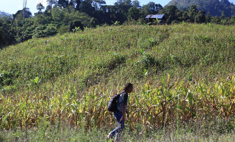 Aceh Besar (Aentenews) – Warga melintasi  kawasan pertanian yang ditanami komoditas jagung di lereng pegunungan desa Panca Kubu, kabupaten Aceh Besar, Aceh, Sabtu (10/1/2026).  Desa Panca Kubu merupakan sentra pertanian penghasil, tanaman jagung, rambutan, pinang, langsat, pisang, dan beragam tanaman palawija lainnya dan dulunya di Panca Kubu itu tinggal sekitar 300 KK warga transmigrasi, nanun saat konflik banyak yang kembali ke daearah asalnya. Foto Aentenews by Ampelsa.