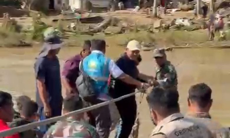 Dalam perjalanan menuju lokasi, rombongan Wakil Gubernur Aceh bersama General Manager PLN harus menempuh jalur alternatif dengan menyeberangi sungai menggunakan rakit darurat, menyusul rusaknya akses jalan akibat banjir dan longsor.//Redaksi.
