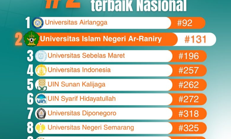 Capaian ini melanjutkan tren positif peningkatan reputasi riset UIN Ar-Raniry. Dalam SIR 2025, kampus dengan tagline “Kampus Energi Kebangsaan, Sinergi Membangun Negeri” tersebut menempati peringkat keempat nasional pada kategori kinerja riset, sekaligus menjadi perguruan tinggi dengan capaian tertinggi di luar Pulau Jawa.