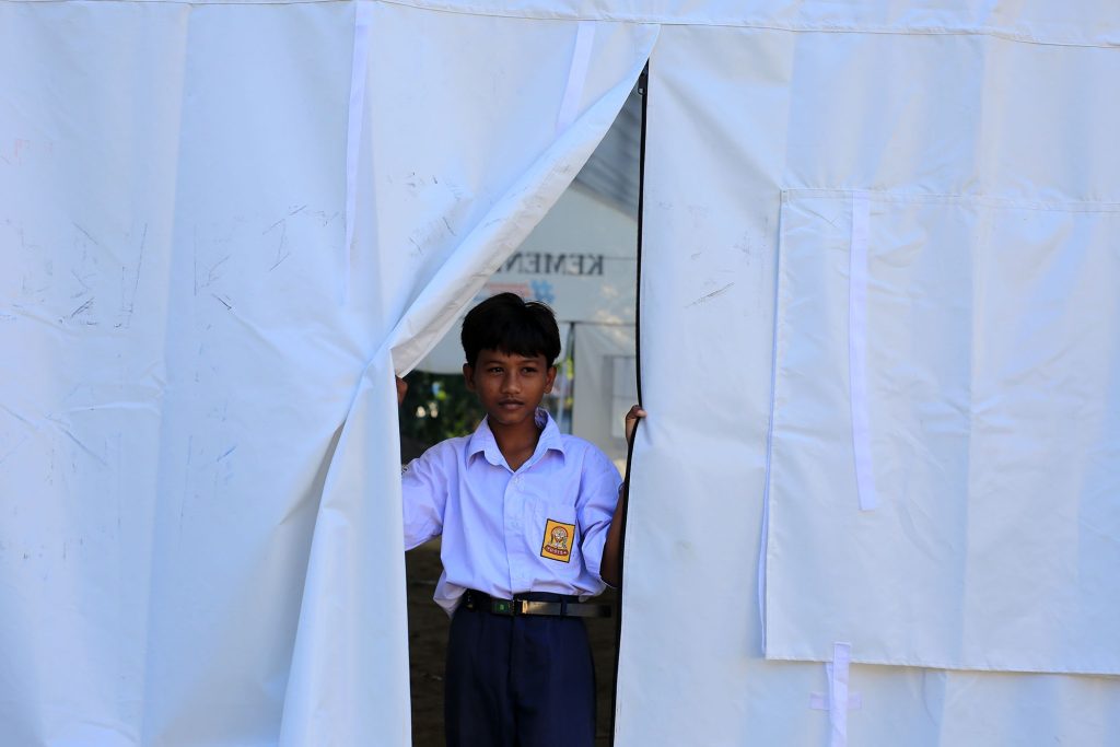 “Mari bang kit semangat, semngat, semangat. Kita memang dalam kondisi bencana, tapi kita haru sekolah dan bangkit Bergama,” kata Muhammad Diah.
