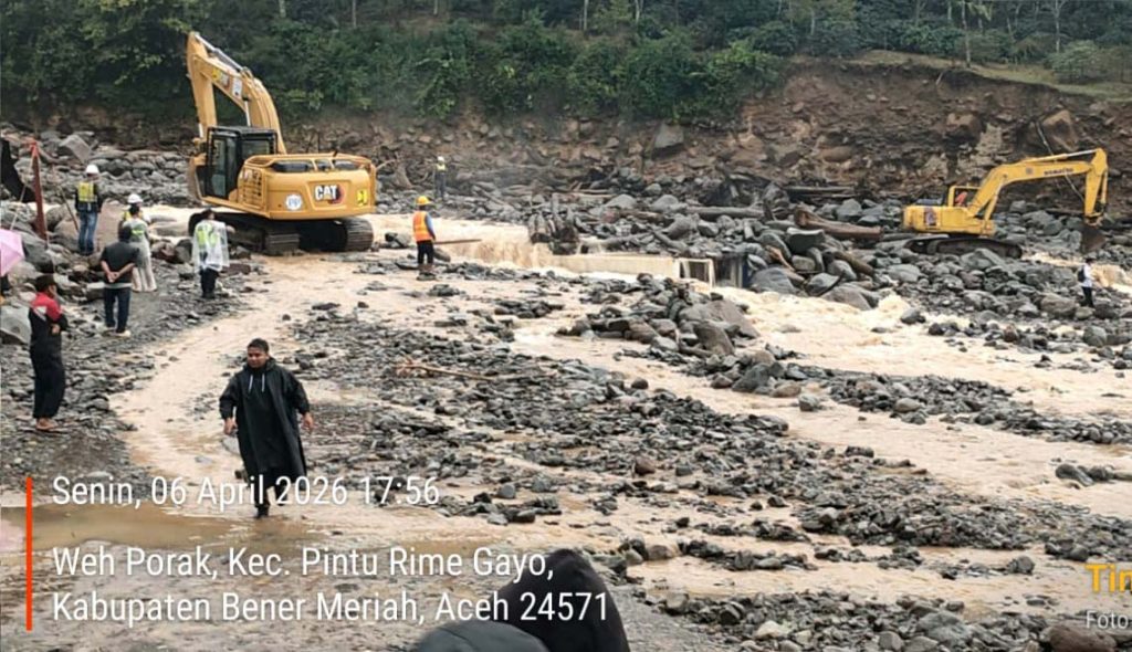 Kepala Pelaksana BPBD kabupaten Beneri Meriah, Safriadi yang dihubungi Aentenews dari Banda Aceh Senin (6/4/2026), menyatakan jalur alternatif di desa Wih Porak kembali lumpuh menjelang sore, karena diterjang luapan sungai yang bercampur material batu dan lumpur akibat curah hujan tinggi.