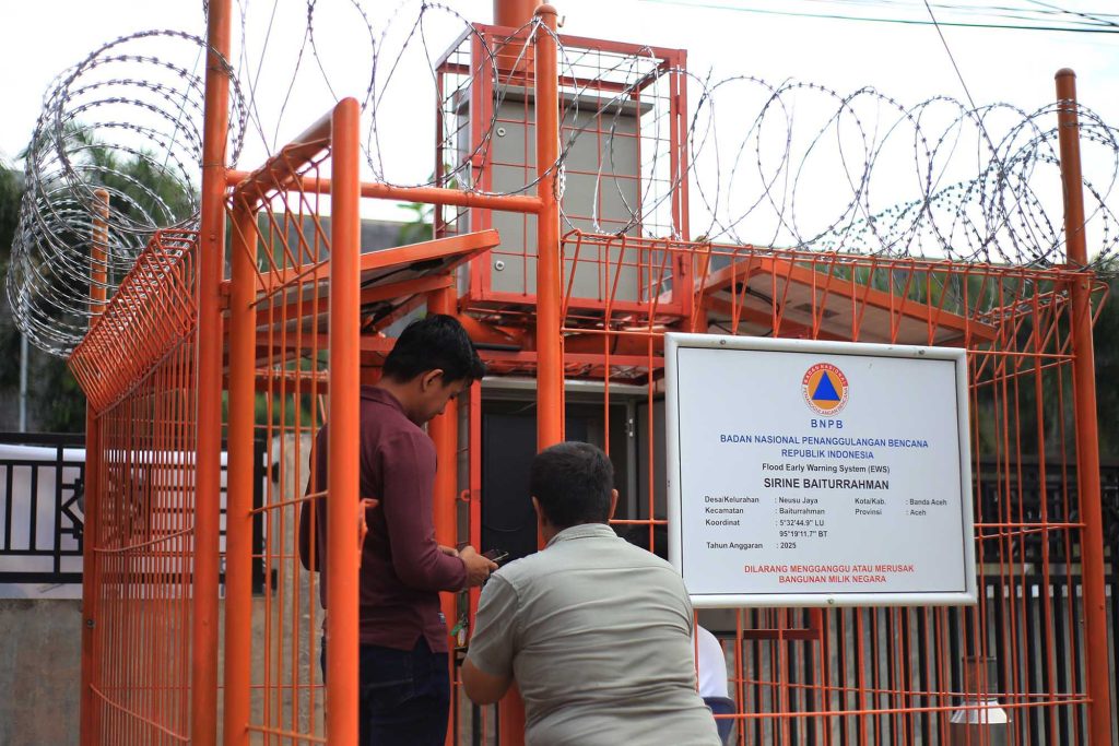 Peralatan Early Warning System (EWS) menyala saat uji jaringan dalam agenda persiapan simulasi bencana banjir menjelang puncak peringatan Hari Kesiapsiagaan Bencana (HKB) di Banda Aceh, Sabtu (25/4/2026). Badan Nasional Penanggulangan Bencana (BNPB) menggelar puncak peringatan Hari Kesiapsiagaan Bencana (HKB) pada 26 April 2026 di Banda Aceh sebagai edukasi menuju masyarakat mandiri jika terjadi bencana banjir. Aentenews Foto/Ampelsa.